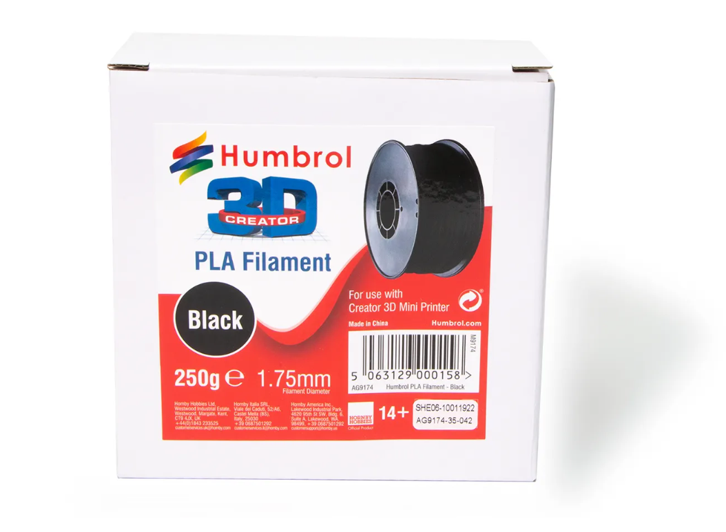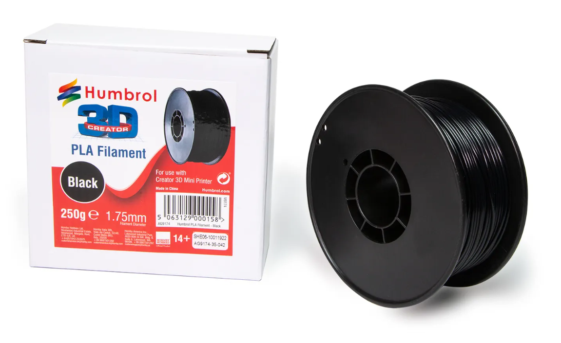 3D Printing Black PLA Filament for use with the Humbrol 3D Printer.