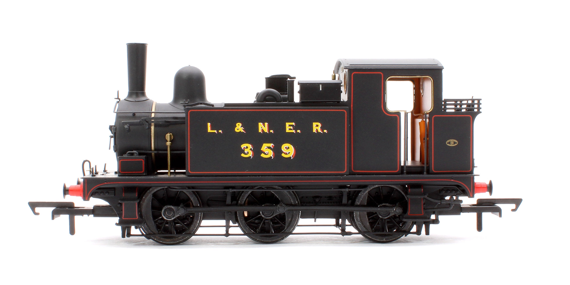LNER J69 No. 359 came from an earlier batch of ten locomotives built at Stratford in 1892 and was rebuilt in 1904 into the R24r Class, gaining new safety valves, a new boiler design and 1180 gallon side tanks, but retaining the original narrow cab and coal bunker. No. 359 is portrayed in the earliest 1923 version of the LNER livery of Black with Red Lining, with fully shaded L&NER initials.