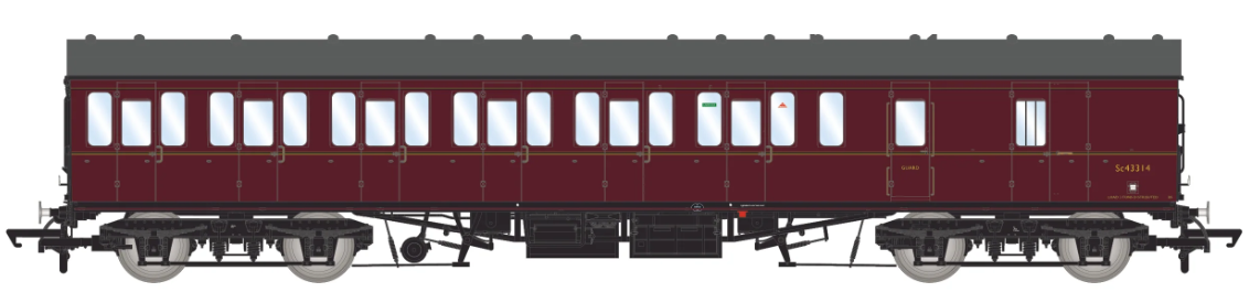 First up, Accurascale are offering the Midland Region BS, C, S and SO in Maroon, without and without lining. The lined Midland vehicles typically carried their lining lower than the BR spec, to match against the lined Stanier stock. Accurascale will also be covering the Scottish Region, with a BS, C and S in Maroon, all lined, but in BR and Stanier positions. Being based on circa 1962 photos, the First Class yellow stripe has now appeared.