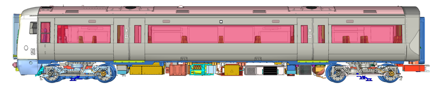 Such is the level of research required to execute these units correctly, Accurascale employed a new approach to scanning. In addition to the common exterior scans to create an overall cloudpoint model, Accurascale’s Development Team also employed the services of a rail head scanning specialist for the bogies and underframe, to ensure that those areas which are normally in a digital ‘shadow’ were covered to give the ultimate in underframe detailing. This ensures that the underframe detailing and cabinets are very visible from side views and to get placement perfectly aligned, Accurascale needed to scan the underframe ‘raft’, with and without equipment attached.