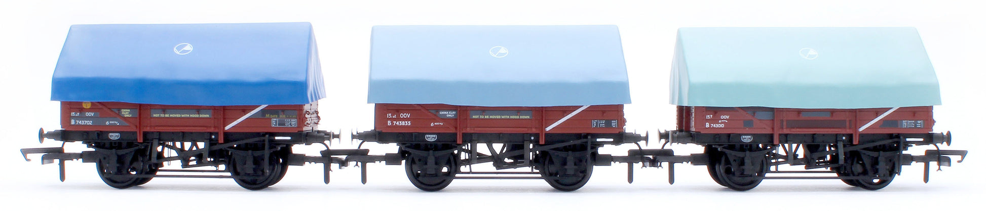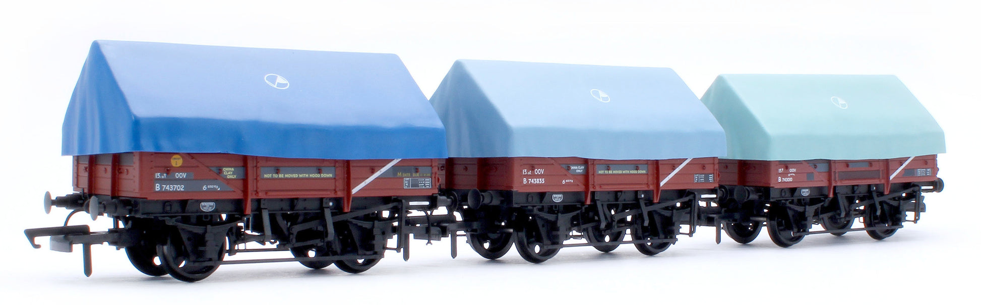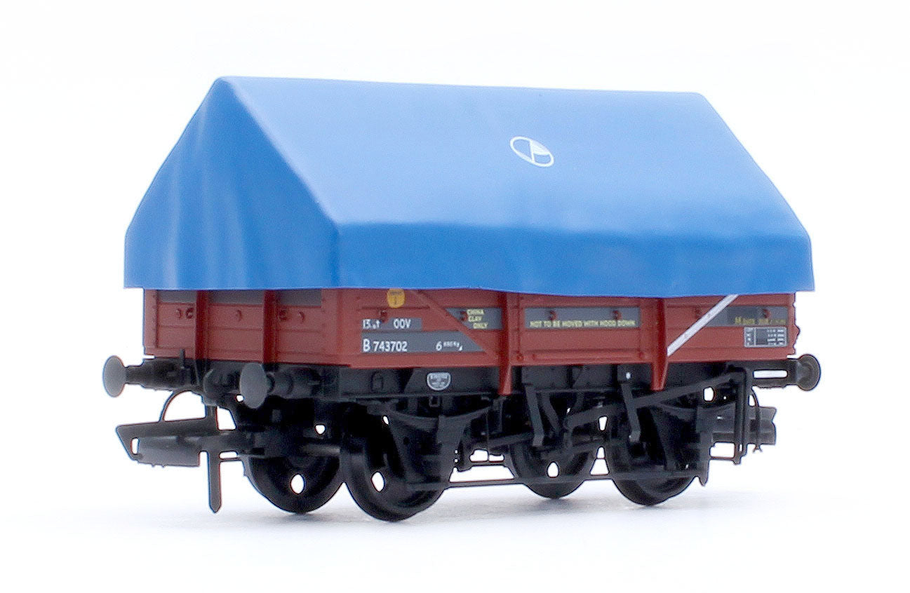 The first 3 batches of wagons, totalling 300, were built without vacuum fittings and were independently braked. They would have been outshopped in the traditional BR unfitted grey like other wagons of the era. The nature of China clay meant it had to be transported dry and the “hoods” became a feature of these wagons. A tarpaulin sheet would be fitted once loading was completed and when the wagon ran back empty, the sheet would simply be folded up and travel back either in the bottom of the empty wagon or in a dedicated box van marshalled in the train just for carrying wagon sheets.