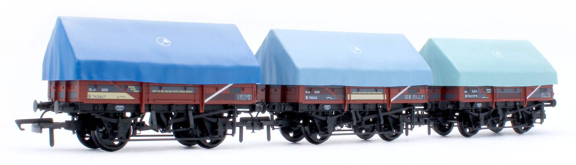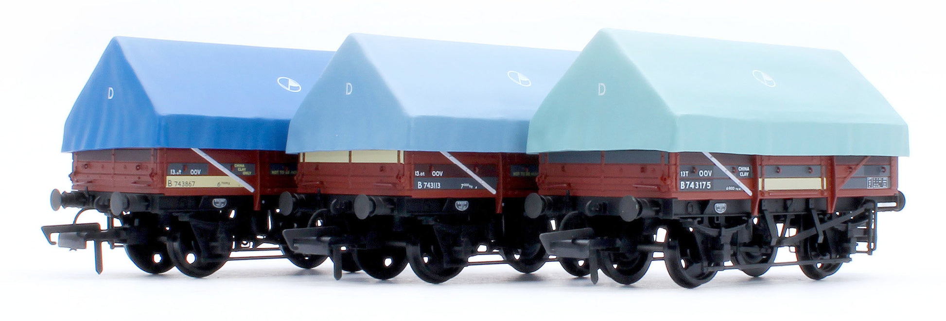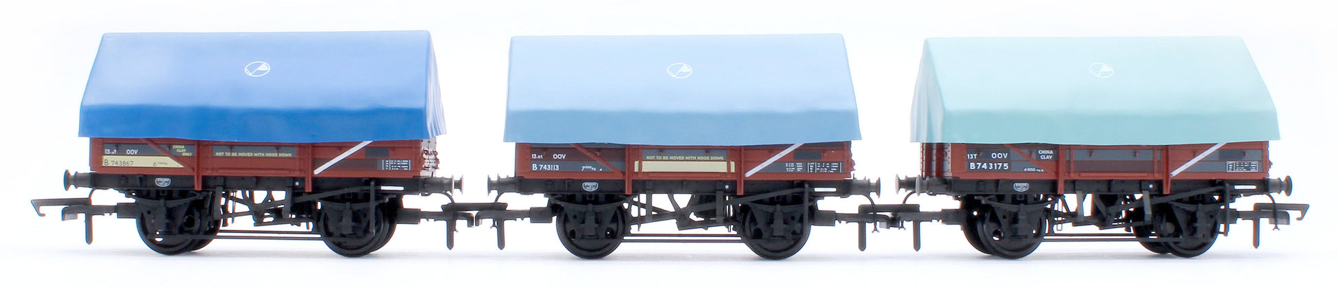 The sheets/hoods on the new clayhood wagons are removable showing a fully detailed interior and tarpaulin bar (if fitted) with correctly oriented longitudinal floor planks. The wagons feature a diecast underframe and axles running in brass bearings for super smooth running.
