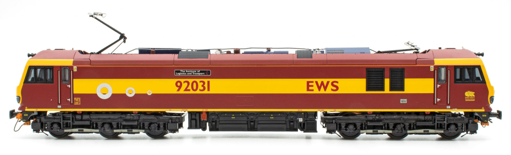 One of only two locomotives repainted into EWS maroon and gold, 92031 was unveiled at the Institute’s annual conference at the Metropole Hotel, Birmingham, in June 2001. Incredibly, the locomotive was moved by road for the naming ceremony — having originally been allocated the unused name Schiller.