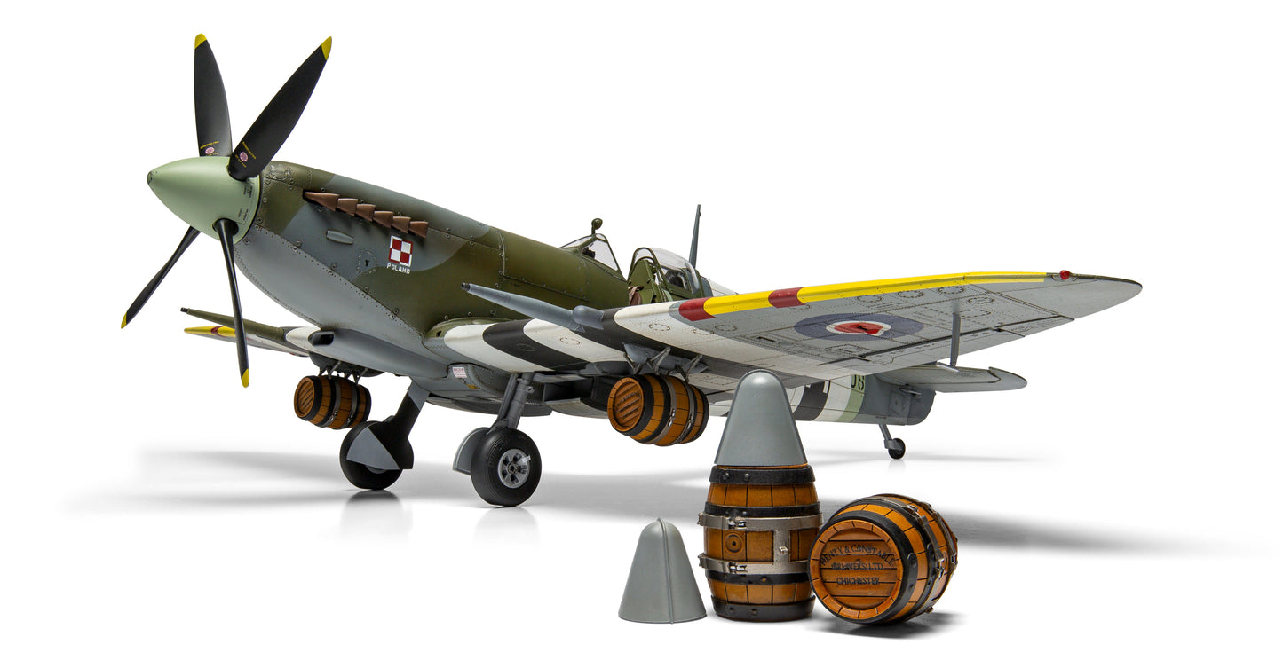 This Supermarine Spitfire Mk.IXc kit in 1:24 scale includes parts required to truly replicate the beer carrying Spitfires ‘Flying Drays’.