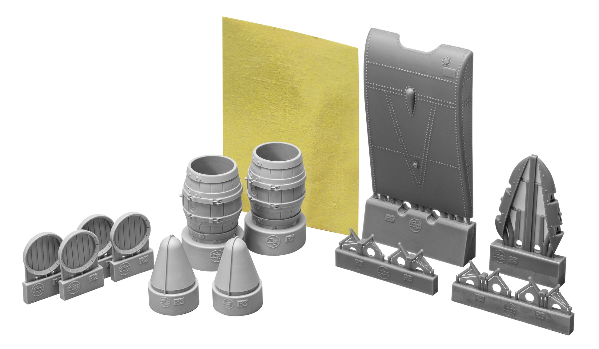 Included in this special release are high detail resin parts required to truly replicate the beer carrying Spitfires ‘Flying Drays’.