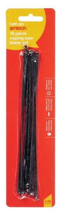 DURABLE: These coping saw blades are made from heat treated, hardened carbon steel, with milled and set 24 TPI (teeth per inch) for fine wood cutting. VERSATILE: Suitable for use with 165mm (6.5") coping saw frames, they are compatible with Amtech's M2000 and M2010 coping saws.