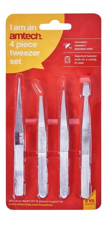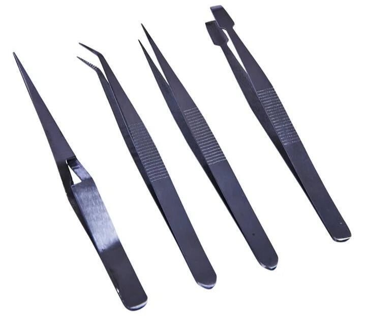 VERSATILE: This handy tweezer set contains a reverse action precision tip, broad tip, angled and straight tipped tweezers. USES: They are ideal for hobby, crafts, jewellery repairs, etc.