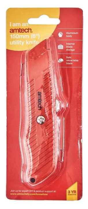 DURABLE AND SAFE TO USE: This 150mm (6") utility knife is made from heavy duty die cast aluminium and has a safe, retractable blade. VERSATILE: This safety knife is ideal for hobby and craft applications like cutting paper, cardboard, leather, etc.