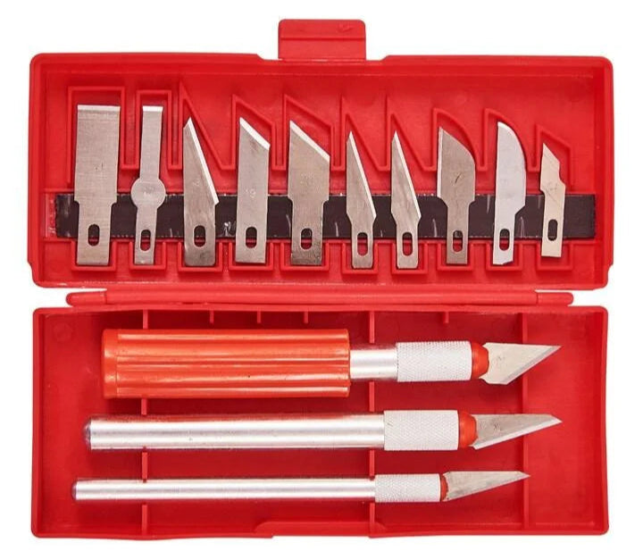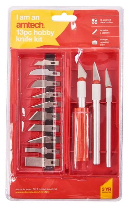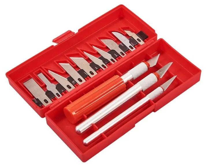 VERSATILE: This 13 piece hobby knife kit contains 3 scalpels and 10 assorted scalpel blades. MANY USES: Supplied in a handy plastic storage case, this craft knife kit is ideal for a wide range of modelling, arts and crafts activities.