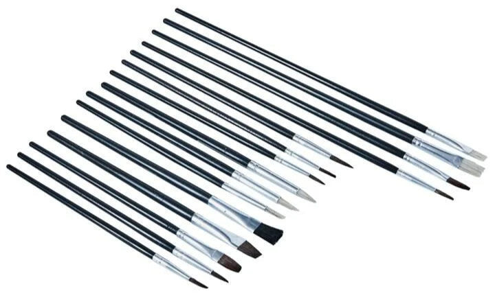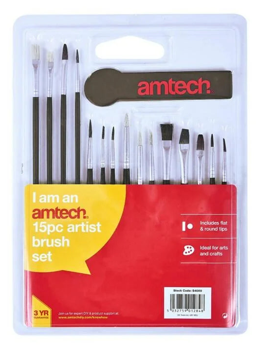 15 DIFFERENT BRUSHES: Includes an assortment of brush sizes, including flat and round-tipped paint brushes with colour-coded handles for a wide range of paint applications and finishes. SUITABLE FOR DIFFERENT PAINTS: This art brush set is ideal for all with sorts of paints, including watercolours, oil paints and acrylics. ALL TYPES OF ART PROJECTS: Ideal for all types of arts and crafts projects, including painting canvasses, ceramics and miniature models.