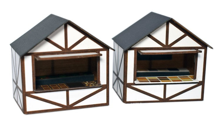 Set of four 1:76 Scale Traditional Market Stalls produced as a Highly Detailed Card kit. The completed model features lots of detail and can be easily customized to suit your scene during construction.