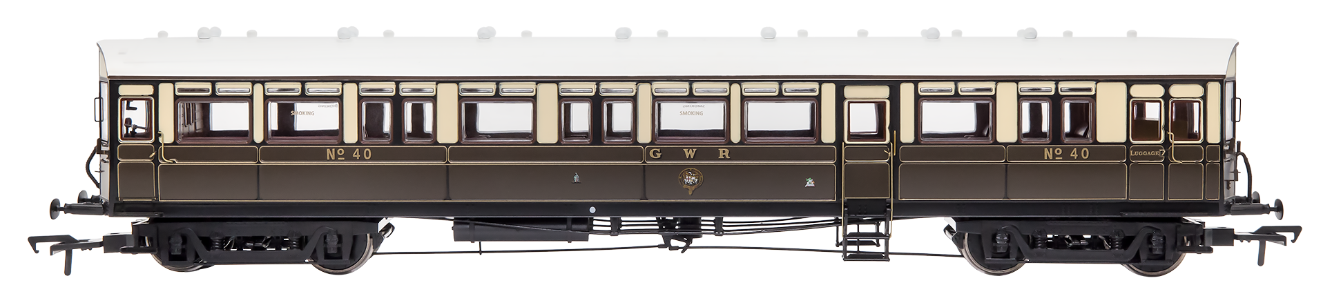 These models are based on the six coaches numbered 36 to 41 constructed during 1907 under Lot 1126 to Diagram ‘N ’. They were built new as driving trailers and not later conversions from old steam rail motors. These coaches were used on branch lines from Cornwall to Wales and retained their gas lighting until they were withdrawn by November 1957.