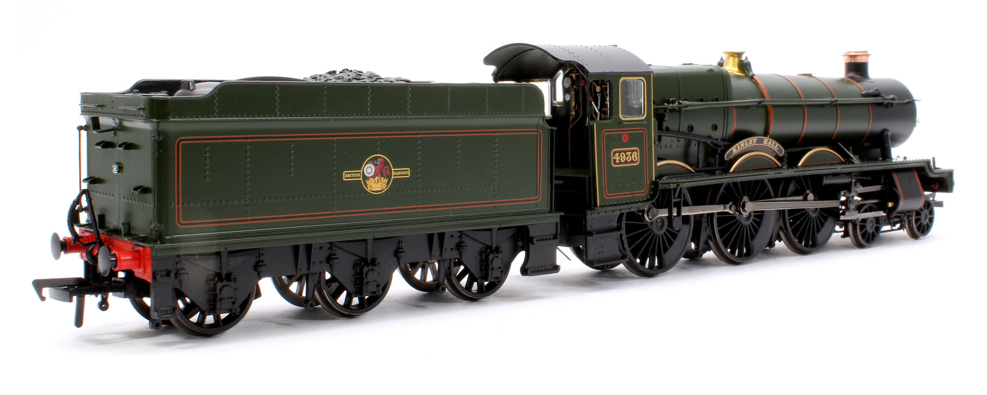 The Great Western Railway (GWR) 49XX ‘Hall’ Class locomotives were designed by Charles B. Collett for mixed traffic use. A prototype locomotive was produced in 1924 when Collett modified No. 2925 ‘Saint Martin’ of the Churchward ‘Saint’ Class by fitting smaller driving wheels, realigning the cylinders and fitting a ‘Castle’-style cab. Extensive trials ensued and small modifications were made before orders were placed for the first production series of ‘Hall’ Class locomotives in 1928. The first engine soon emerged, and the class received names of country houses in England and Wales with ‘Hall’ in their titles, so becoming the ‘Hall’ Class.