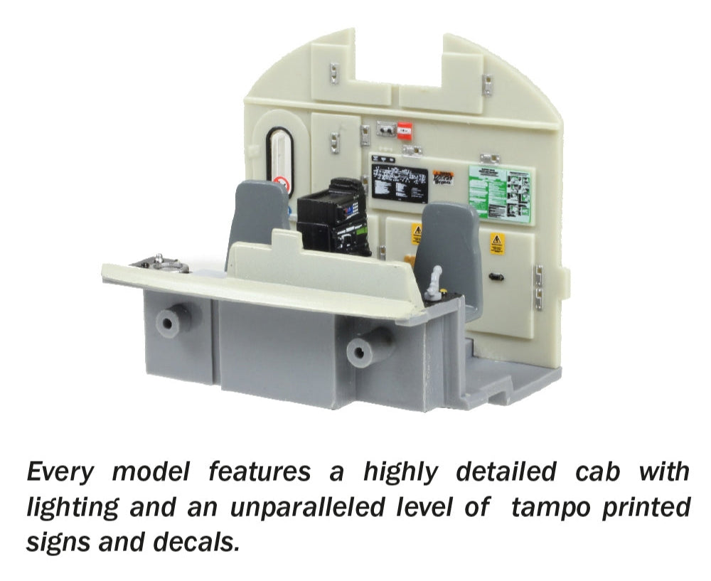 • Diecast metal gearboxes, with gearing arranged for prototypical running speeds and haulage capabilities