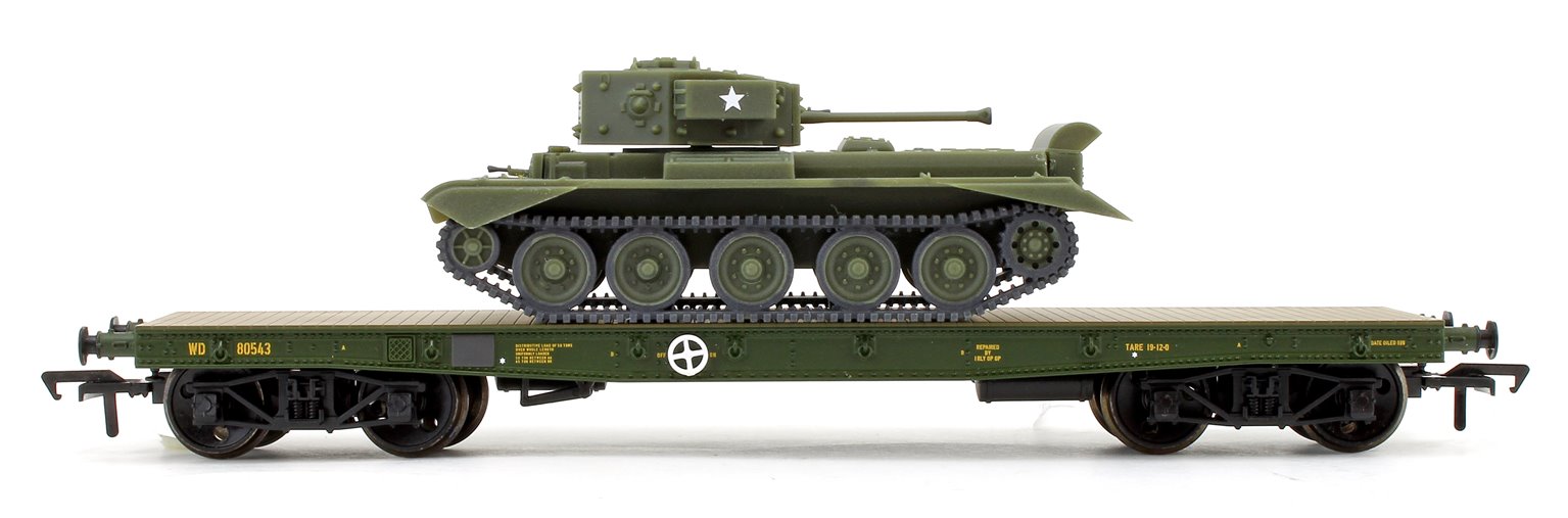 WD 50T 'Warflat' Bogie Wagon WD Bronze Green With Cromwell MKIV Tank