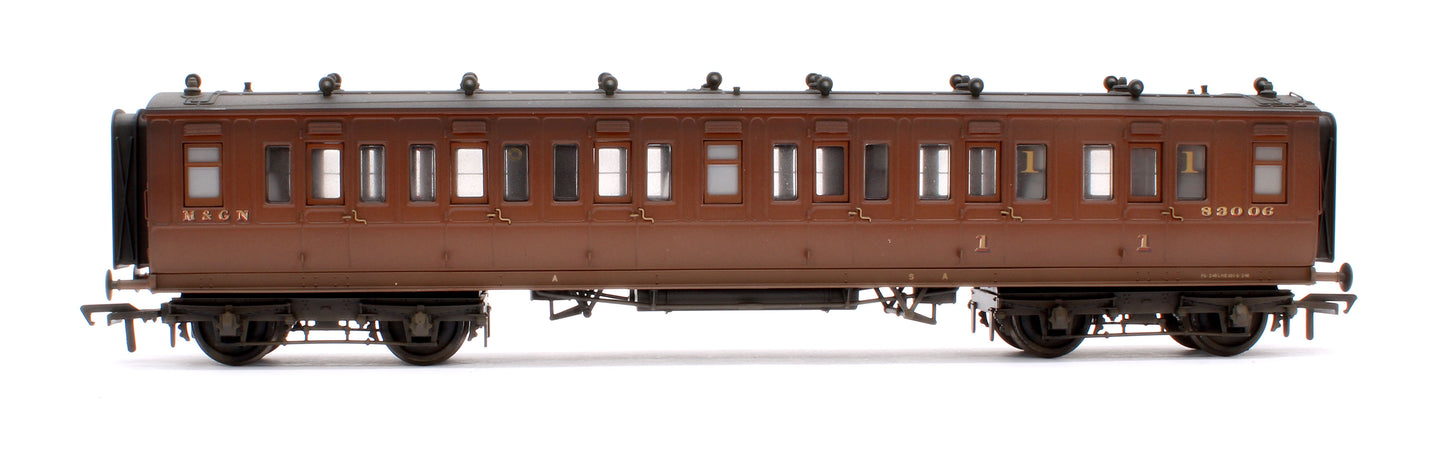Bachmann 39-861W Custom Weathered LNWR 50ft Arc Roof Composite Corridor M&GN Brown No.83006