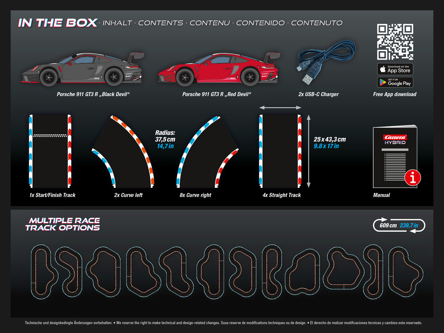 Carrera Hybrid – the perfect combination of gaming and racing fun, because the vehicles can race completely freely over the road at full throttle. AI support allows for a realistic driving experience in different driving modes. Experience true-to-the-original vehicles with front and rear lights, controlled via a free app. With automatic track detection, individual settings and authentic engine sound, Carrera Hybrid offers a unique racing experience. Plus, discover new vehicles for even more racing action!