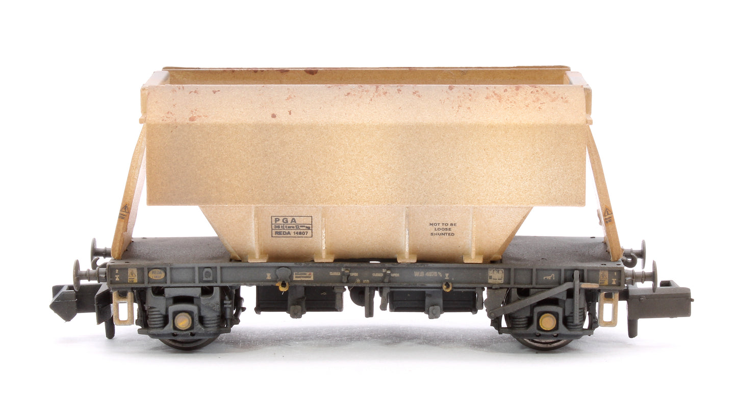 Following the purchase of the PGA wagons by DB Schenker, the wagons began to lose the Lafarge logo with the majority of the fleet remaining in all white livery or gaining a black patch on the body side. Up until August 2016 these wagons could still be seen on the network plying their trade delivering aggregates to terminals around the country. 2019 saw a reduction in the fleet as these wagons started being replaced by newer bogie aggregate hopper wagons.