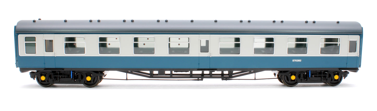 By the 1970s the units were showing their age and with no funding available to replace the fleet, a refurbishment programme was initiated with the work undertaken at BR’s Swindon Works, following the successful trial refurbishment of the first unit at Eastleigh Works. Interiors were stripped and the blue asbestos insulation removed. DMBS vehicles had their guard’s compartment removed and they were converted to Driving Motor Second Opens (DMSO) whilst the TSK was rebuilt as a Trailer Second Open (TSO). The TCK remained as a corridor vehicle becoming a Trailer Brake Composite (TBCK), with a new guard’s compartment fitted between the first class accommodation and the sole remaining second class compartment. The change of layout coupled with the fitting of hopper ventilator windows gave the units a drastically different appearance, both internally and externally, from their original form.