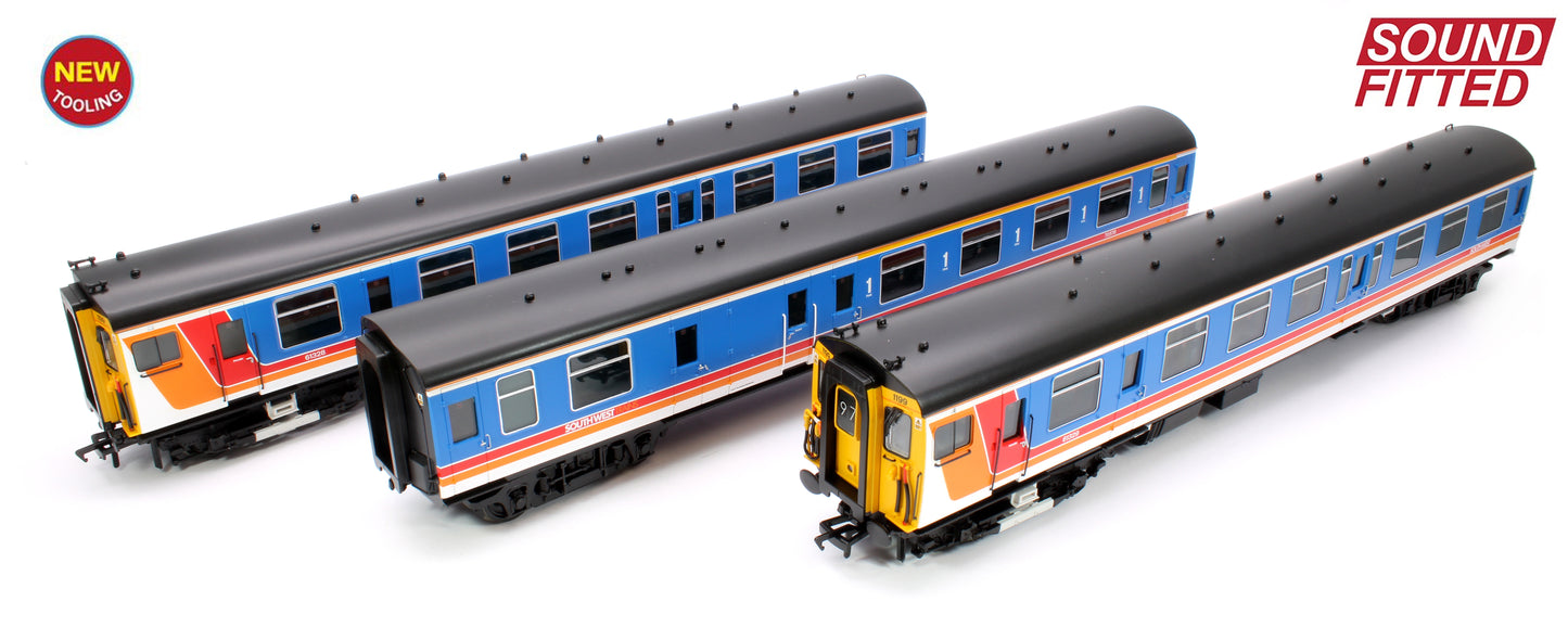 The Bachmann Branchline 4-CEP Electric Multiple Unit (EMU) broke new ground when it was first released and now we’ve created new bodyshells for this award winning model to bring you these new models depicting the refurbished units. With the fitting of hopper ventilator windows and the relocation of the two guard’s compartments from the driving vehicles to a single location in the trailer vehicle, the changes made at refurbishment were drastic and we’ve captured them all in this new Branchline model which depicts 3-CEP No. 1199 in South West Trains livery and is supplied complete with SOUND FITTED.
