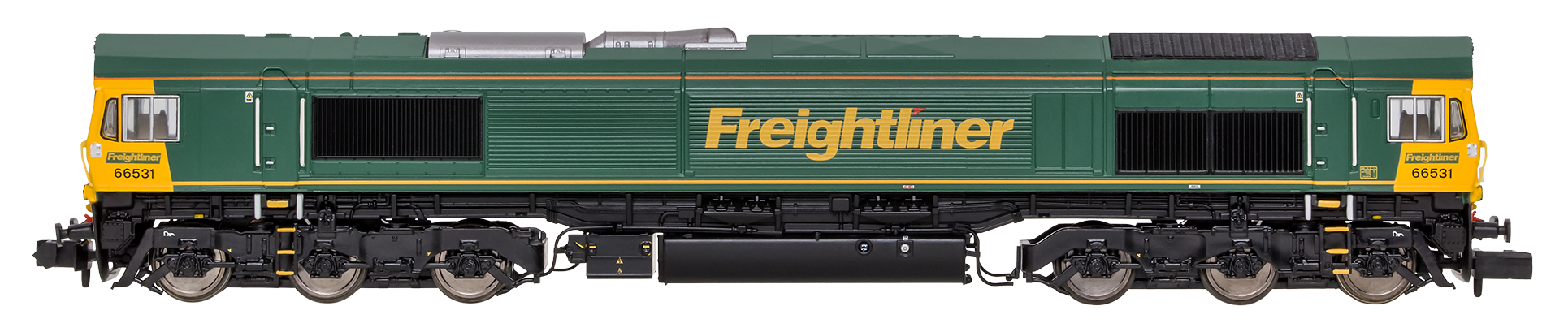 1:148 Scale model of a Class 66 Diesel Locomotive decorated in Freightliner livery. This model features lots of expertly applied details as based on the prototype, a high level of body detail and excellent running characteristics.