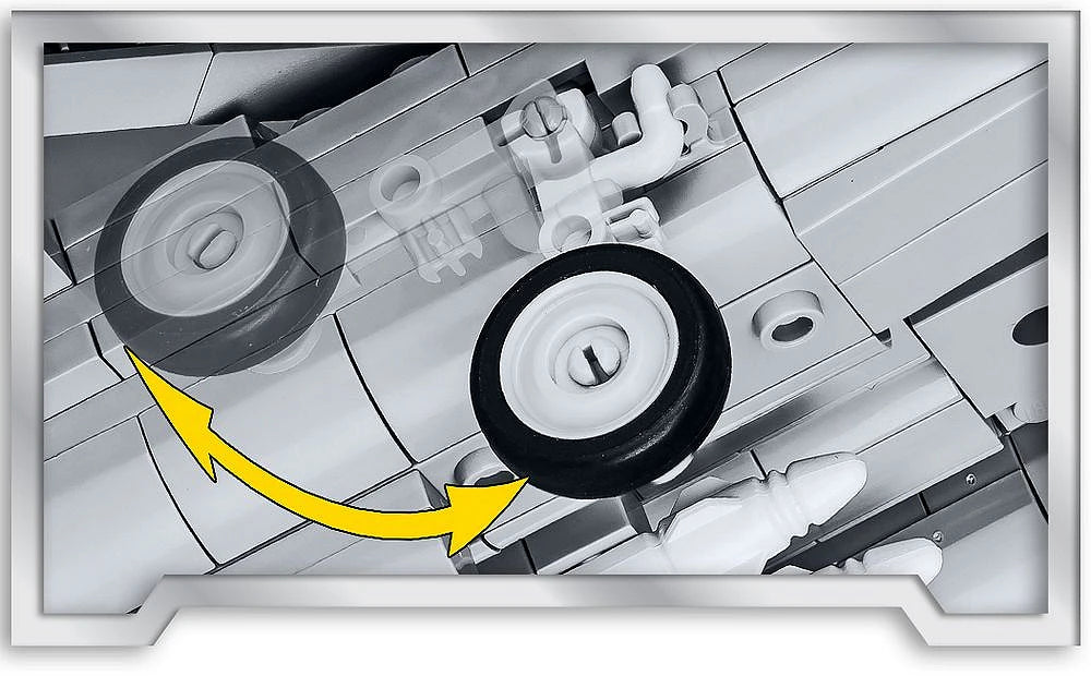 The COBI F-14 TOMCAT is a unique aircraft model released under the original TOP GUN™ and NORTHROP GRUMMAN license. Legendary film pilot Pete "Maverick" Mitchell and his partner "Goose" fly just such a two-seater. Relive the excitement of TOP GUN by building your own F-14 in 1:48 scale. The model was faithfully reproduced from 757 COBI construction blocks and includes high-quality prints faithfully reproducing the original markings of the movie aircraft. The model is equipped with movable wings with variable geometry, retractable landing gears and rotating wheels. There is a large arsenal of weapons under the wings. In the cabin you can place both the film aviators, and their seats are even signed (Maverick & Goose)! The figures accurately recreate the appearances of the film's heroes and are equipped with characteristic helmets and oxygen masks. The set also includes an elegant display stand and a plaque containing the name of the plane and the logo of the film. This exclusive licensed set is definitely a great gift idea for every movie, aviation and military fan, regardless of age. The plane also looks perfect in an elegant study or in a teenager's room.