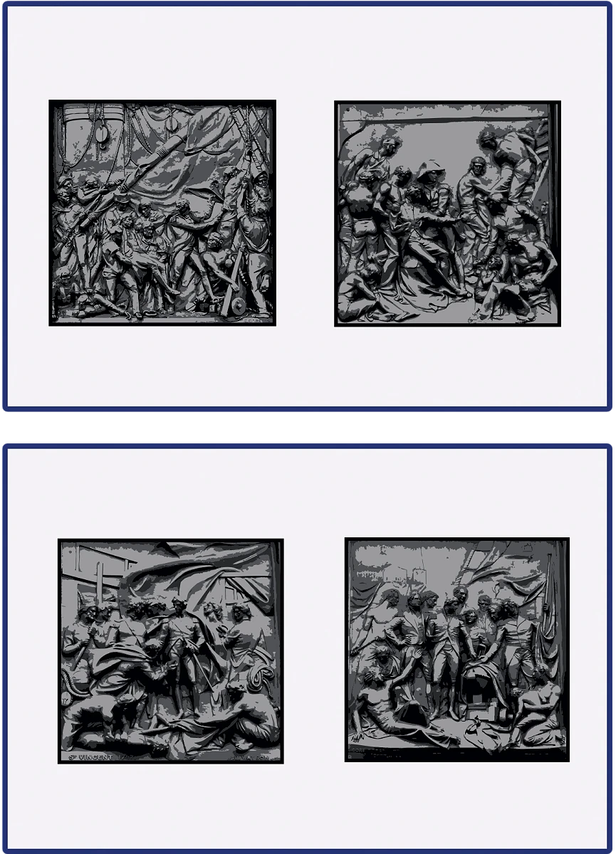 An additional decorative element of the base are four bronze lions, designed by Sir Edwin Landseer and cast by Carlo Marochetti in 1867. The brick model also includes these reliefs in the form of high-quality prints