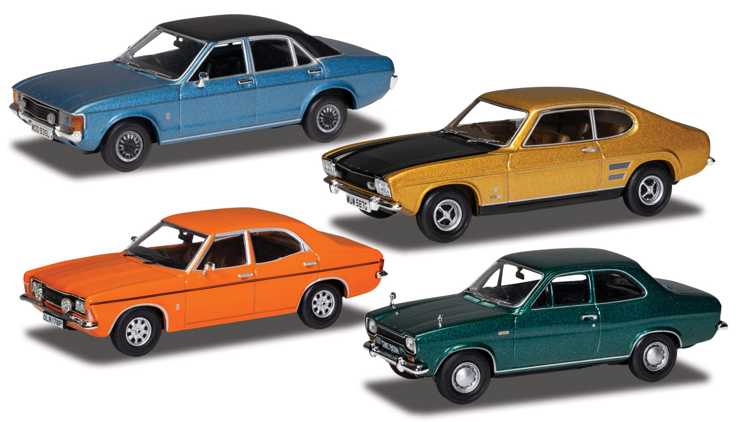This group of GT-badged Fords brings to life a memorable period in the blue oval’s history, showcasing four superb GTs in their original evocative period colours. The die-cast Vanguards models included are: