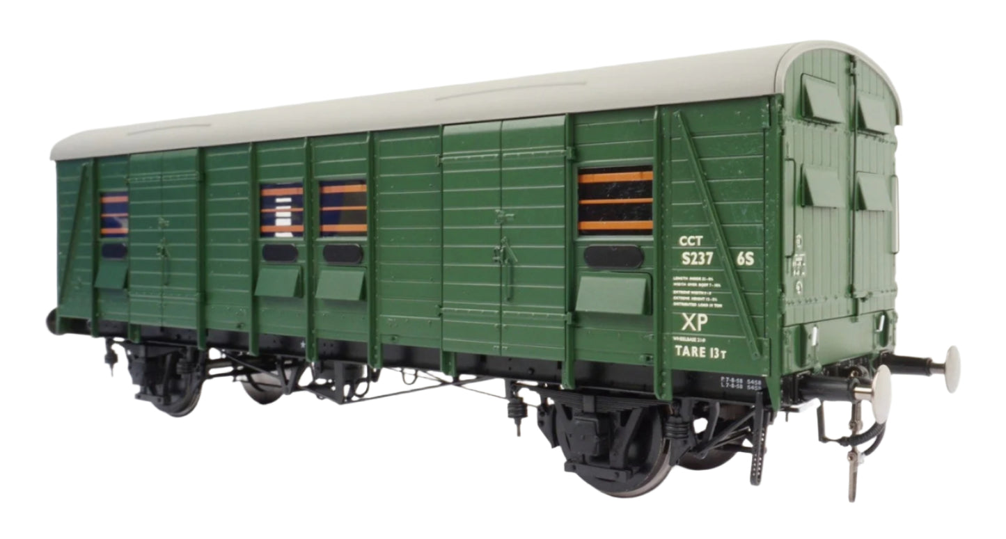 Hundreds of these general purpose two-axle vans were built from the early 1920's and were used on all railway networks in the UK. With folding end doors, they continued the long tradition of the Covered Carriage Truck (CCT), a type dating back to the 19th century for the movement of road carriages and cars.