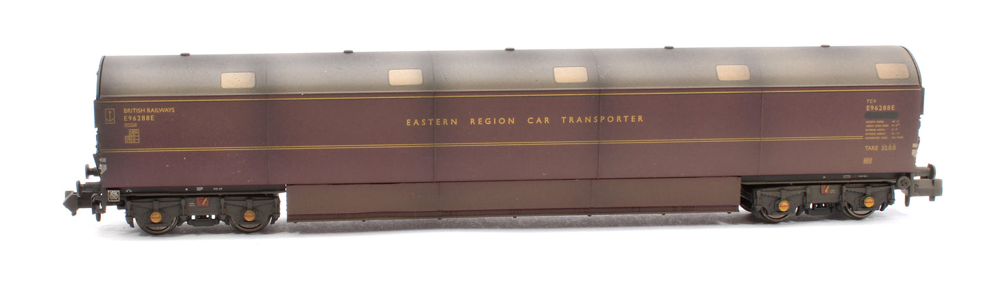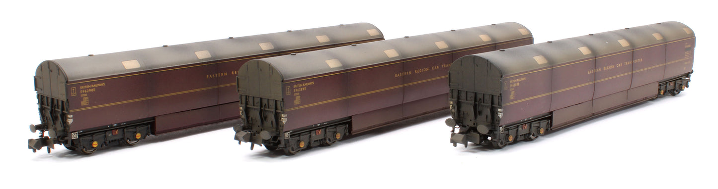 Sonic Models S2303-01 Custom Weathered Newton Chambers Car Transporter Eastern Region BR Lined Maroon E96288/289/290E - Pack 1