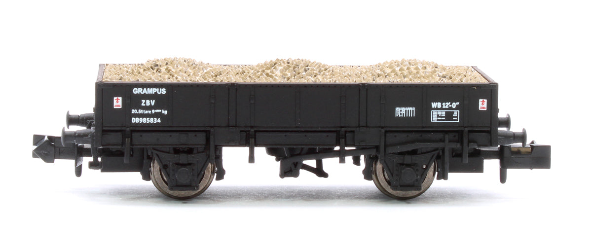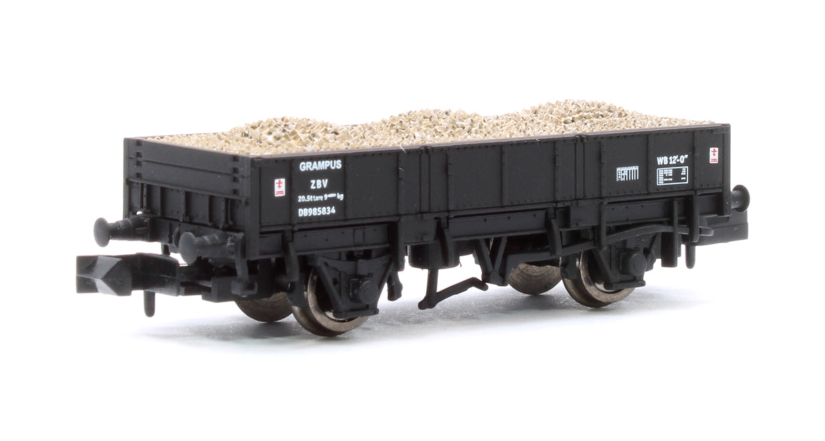 The Grampus wagon was the principal open wagon used by BR from the 1950s until the early 1980s. Their design incorporating three drop down sides and removable end planks made them very versatile, enabling them to carry everything from ballast to signal posts.