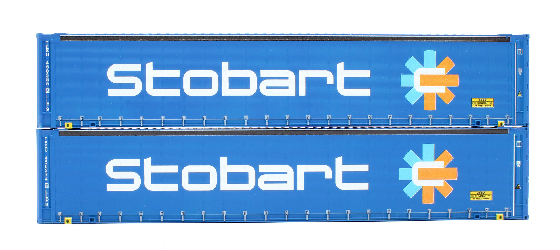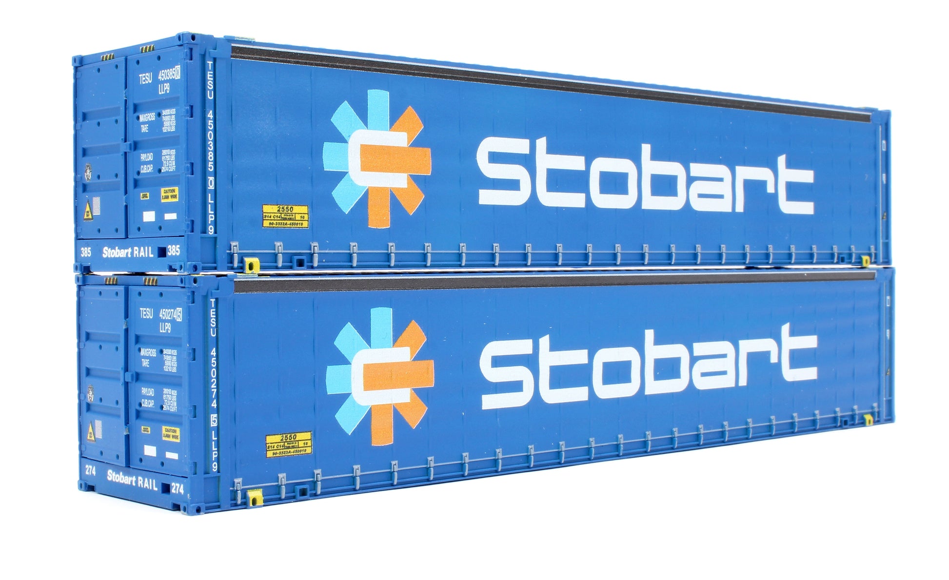 Set of two 45ft Curtainside containers decorated in Stobart company markings. These containers are produced as 1:76 scale Painted models ready to be used as wagon loads or as scenery around your busy freight yard.
