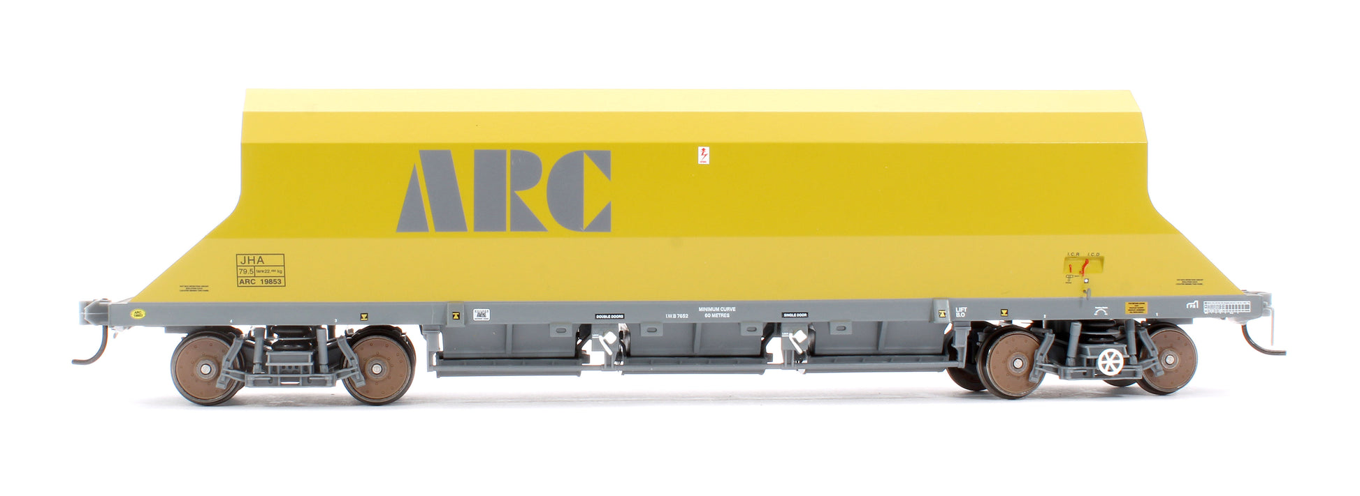 The fleet is noticeable for its use of distinctive inside bearing TF1 low track force bogies. There are a few variants of the hopper. The outer hoppers are numbered 17xxx and the inner hoppers are numbered 19xxx. Only the most distal end of the outer hoppers are fitted with buffers, all wagons are fitted with buckeye couplings.