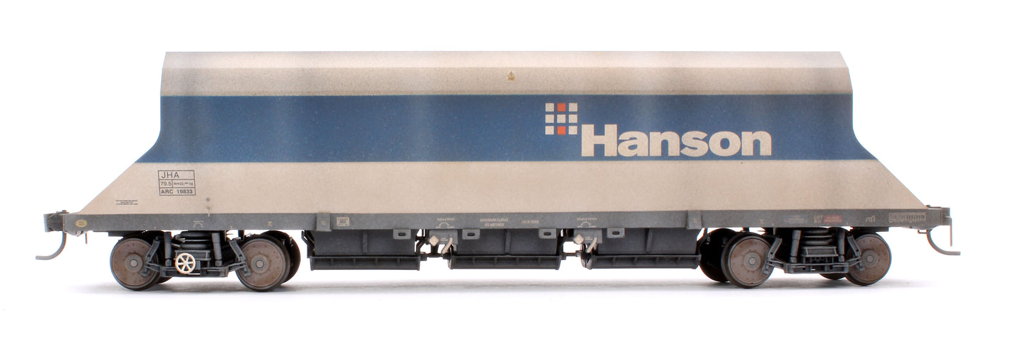 The fleet is noticeable for its use of distinctive inside bearing TF1 low track force bogies. There are a few variants of the hopper. The outer hoppers are numbered 17xxx and the inner hoppers are numbered 19xxx. Only the most distal end of the outer hoppers are fitted with buffers, all wagons are fitted with buckeye couplings.