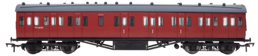 These coaches were designed by William Stanier in the 1930s as flush sided metal clad versions of the previous LMS suburban coaches. The prototype managed to last in service as late as the mid 1960s, in BR use. The prototypes that Dapol's tooling is based on numbered 25 composites and 32 brake end coaches. The coaches appeared in three liveries throughout their service life; LMS lined maroon, BR Carmine and BR lined maroon.