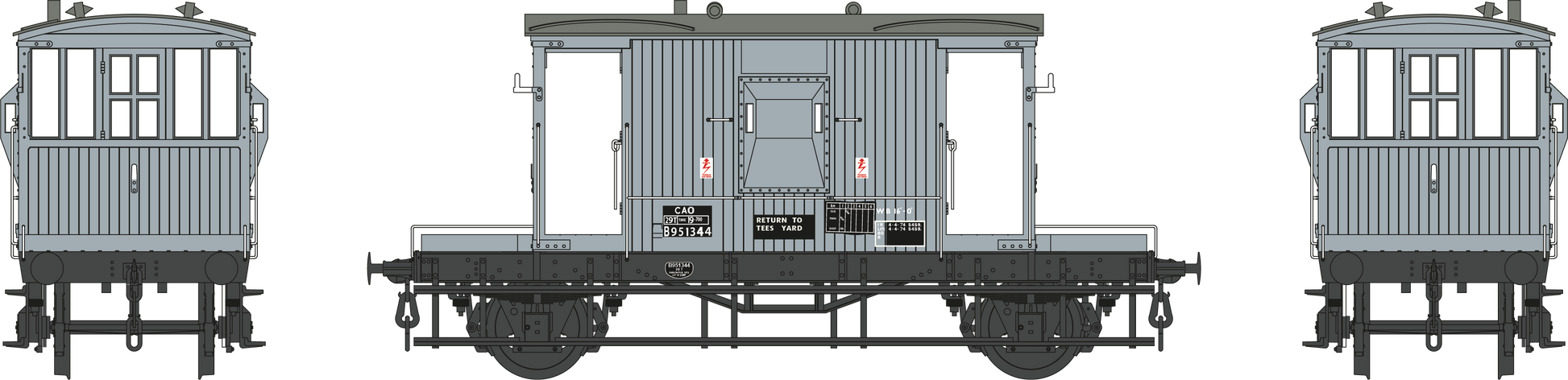 Dapol 7F-200-017 BR 20T Brake Van Diagram 1/504 B951344 BR Grey CAO