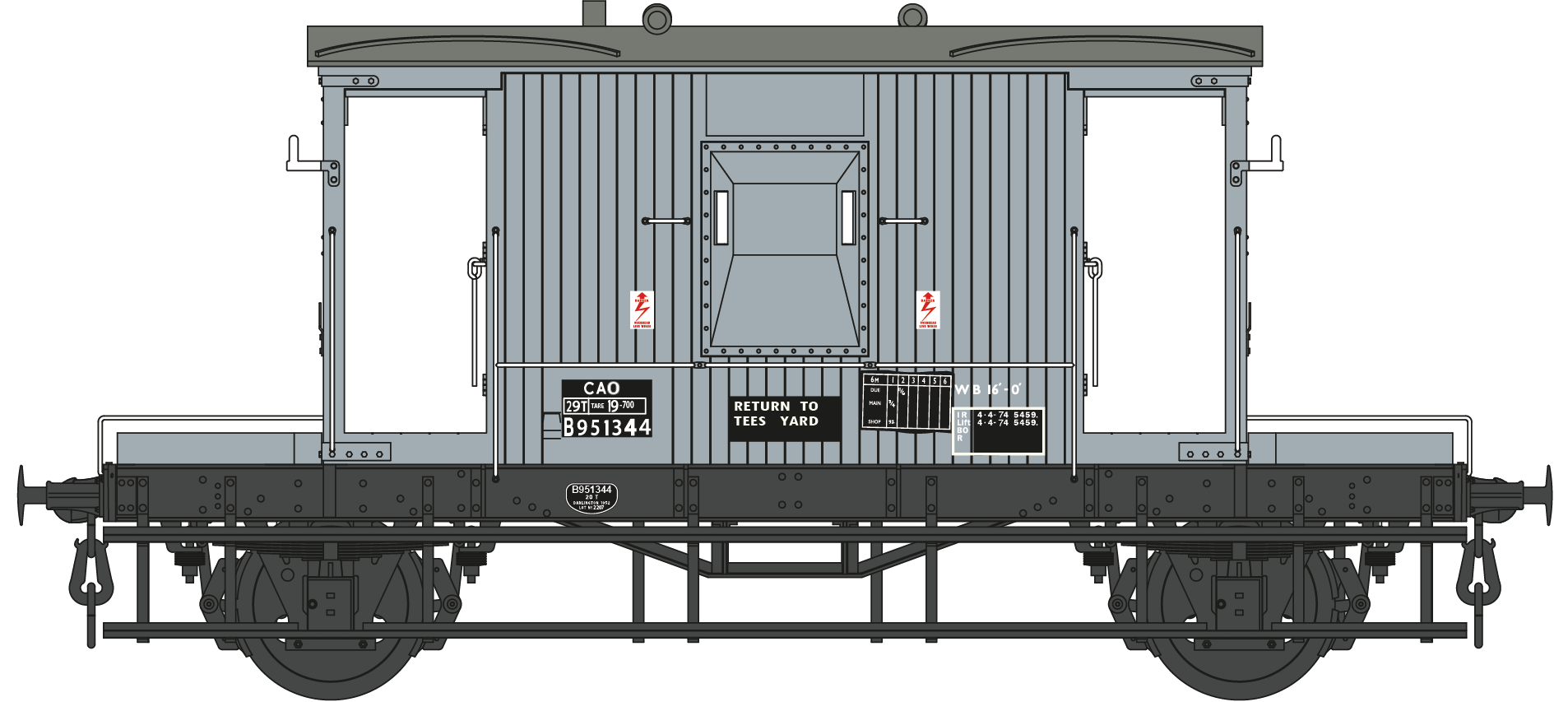 Up to 1955 vans were fitted with oil lubricated axle boxes, later roller bearing axle boxes were fitted as stand and from 1957 Oleo self-contained pneumatic buffers replaced the spindle type.