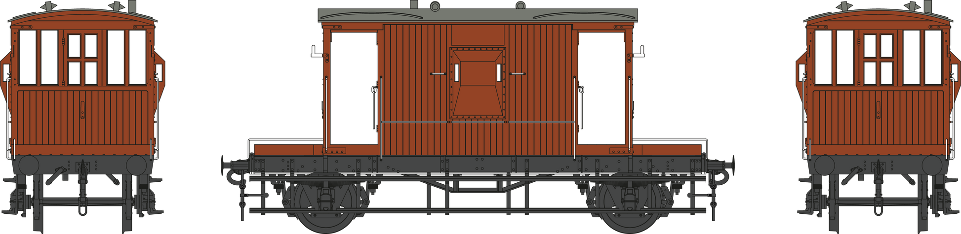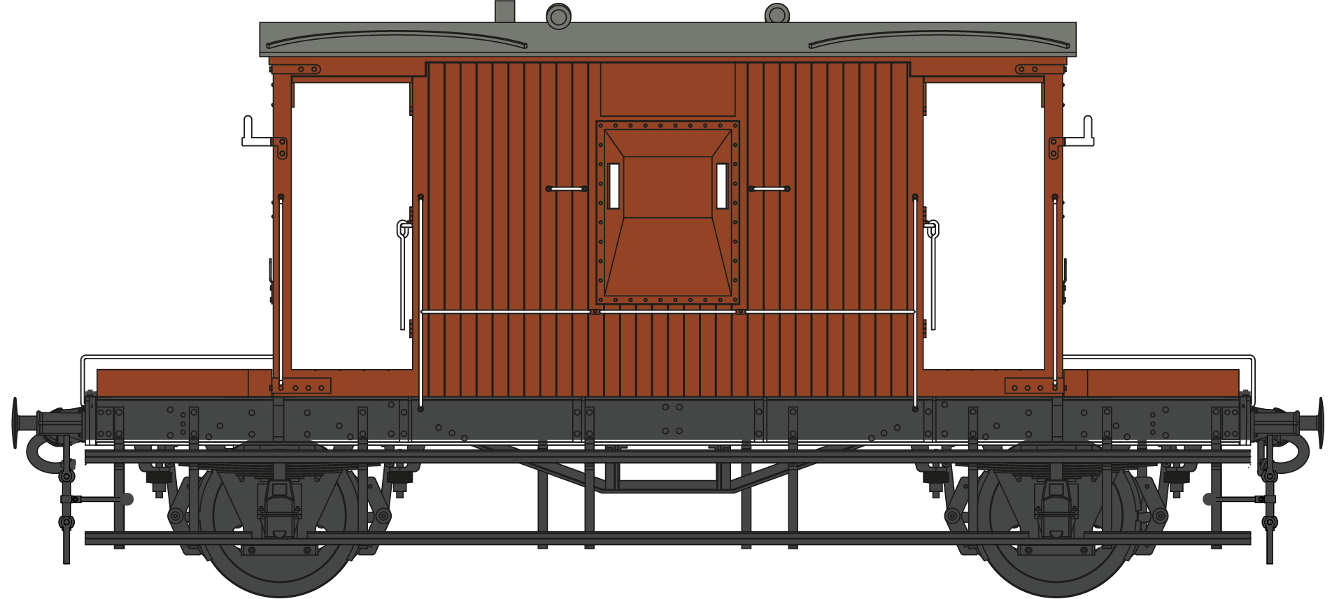 The basis of the standard BR Goods Brake Van was the LNER ‘Toad E’ which had several modifications during early construction notably the full length footboards extending from headstock to headstock and the provision of horizontal grab rails along the