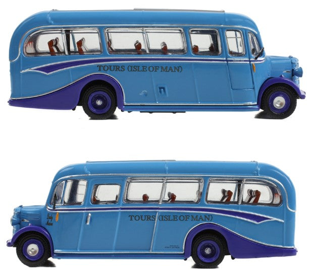 Our model depicts registration 1949MN, one of a pair of Bedford OBs that saw service with Douglas-based coach operator, Tours (Isle of Man), from the late 1980s to the early 2020s. Here it carried the name ‘Lady Meave’, and in its distinctive blue paintwork was a popular attraction on sightseeing tours across the island. It has since returned to the mainland and now resides in East Yorkshire.