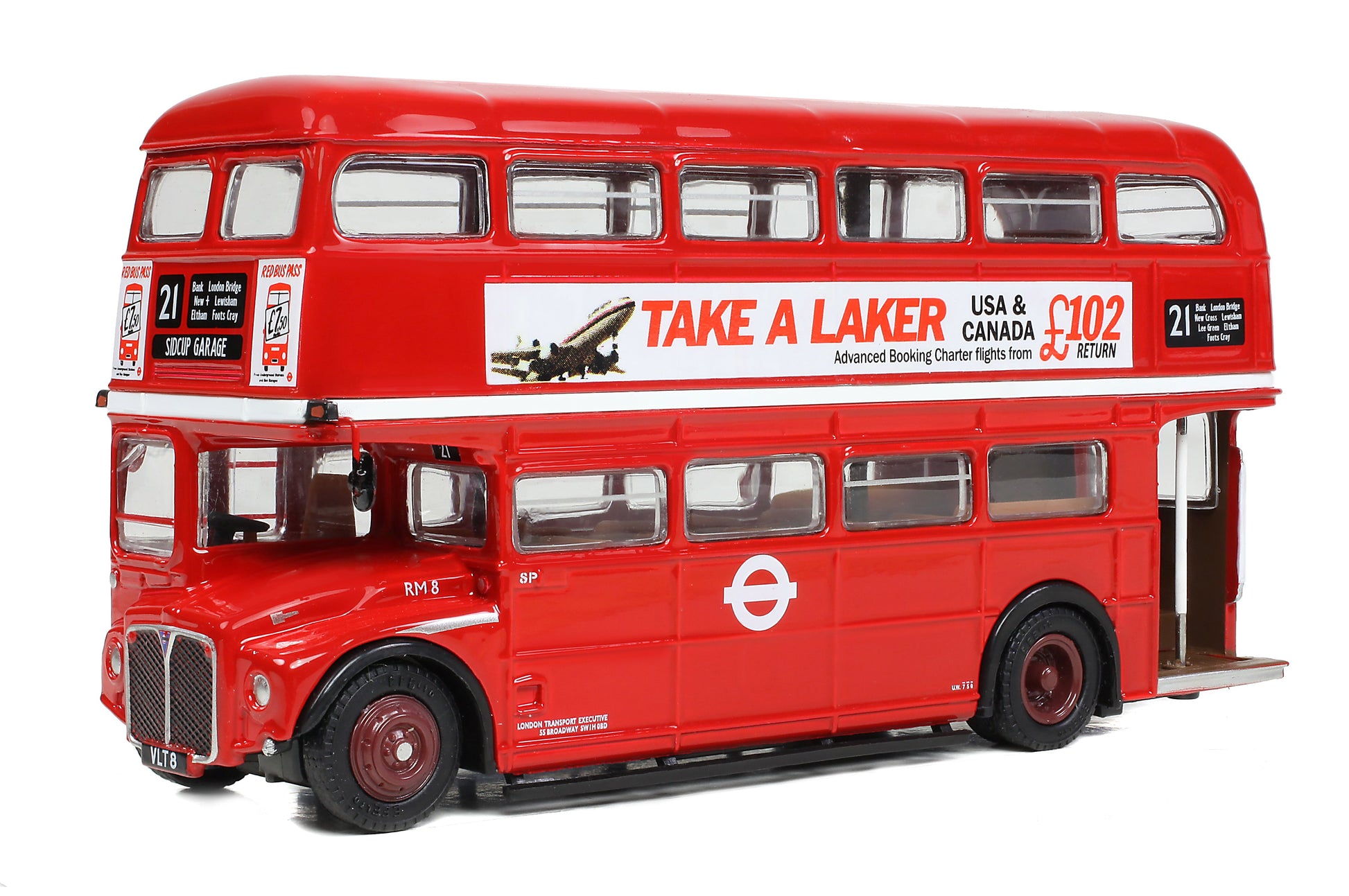 Our model depicts RM8 (registration VLT8), which was the first production Routemaster bus to be produced by AEC/Park Royal. It made its first public appearance at the Commercial Motor Show in September 1958, but was not formally transferred to London Transport until March 1961. Although technically regarded as the first production example, RM8 actually spent the first 18 years of its existence being used as the testing bed for subsequent modifications for the RM type. Consequently, RM8 did not enter normal service with London Transport until March 1976, working out of Sidcup Garage. It is this period that our model represents.