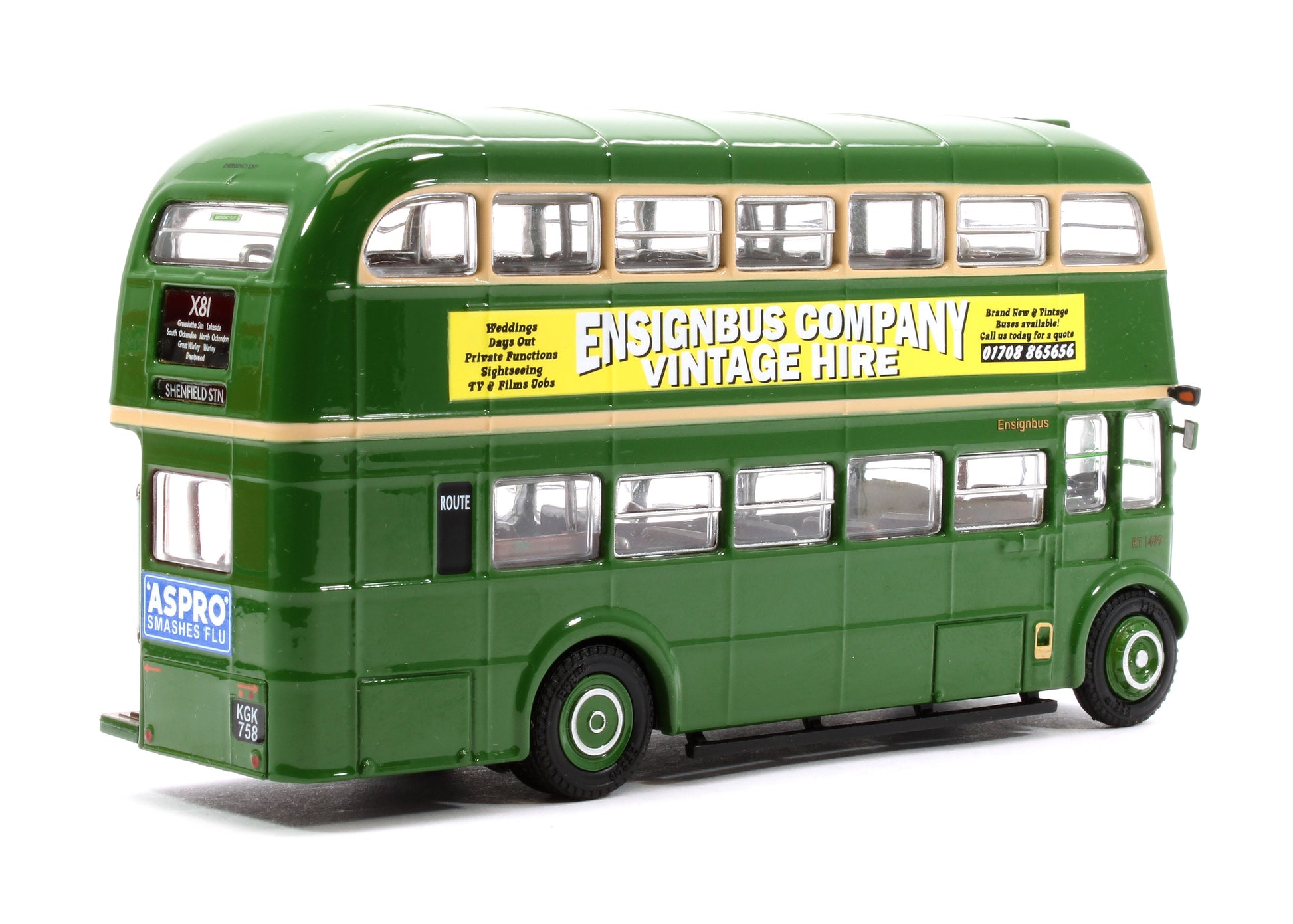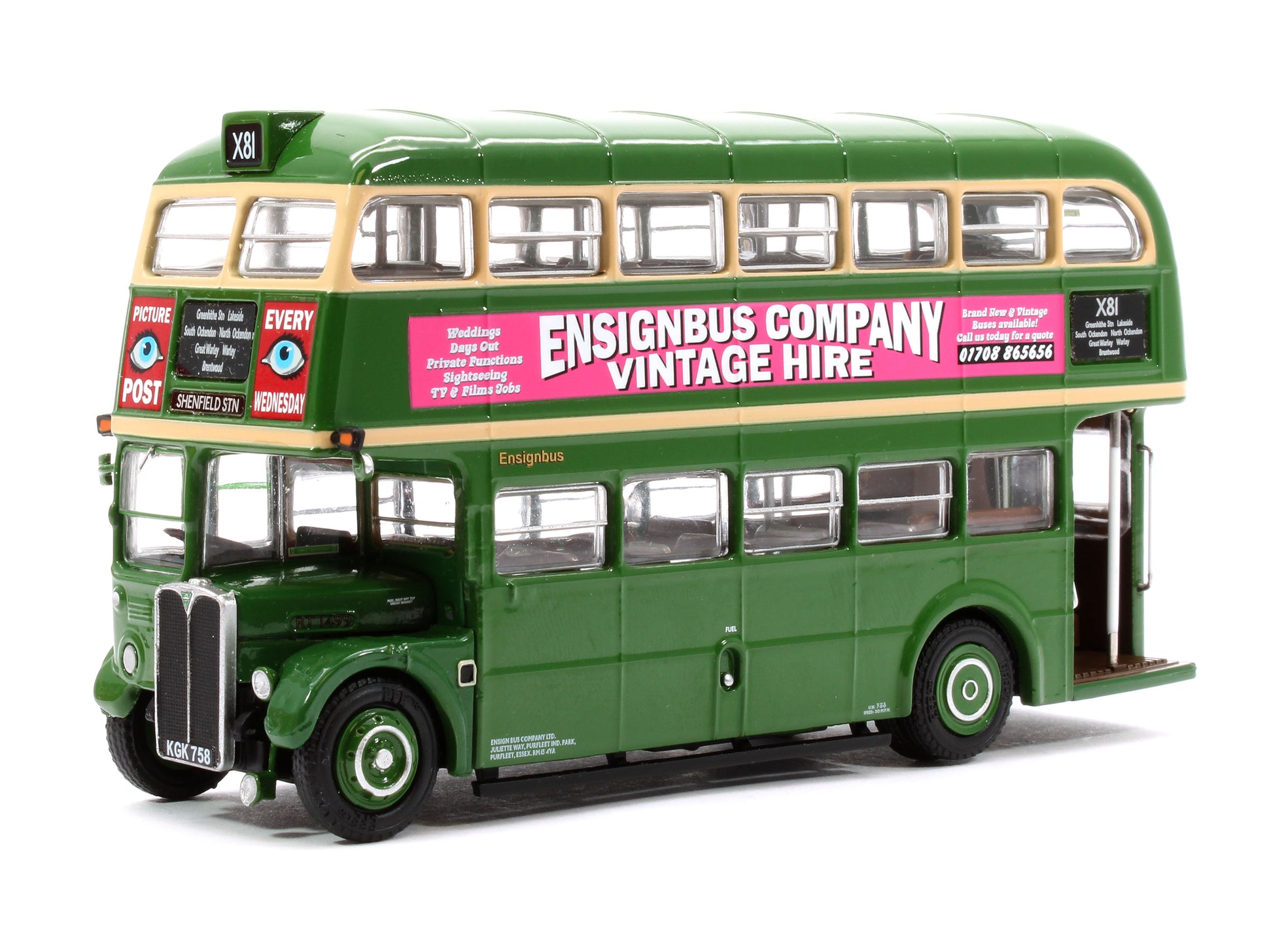 Twin-pack containing Cravens RT buses RT1431 (JXC194) working route X81 to Grays, and RT1499 (KGK758) also on route X81, but with Shenfield Stn destination. Both models in Ensignbus preserved condition.