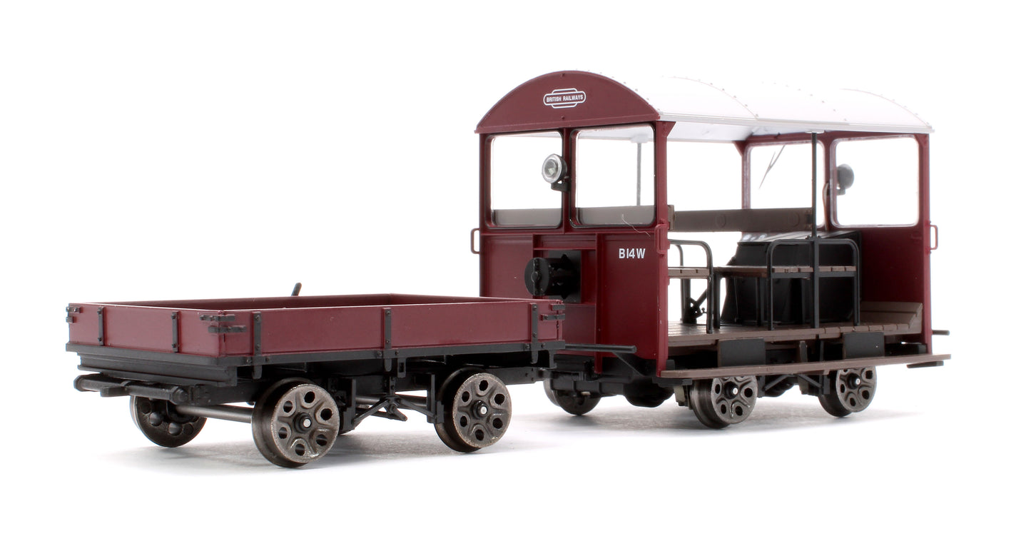 Ellis Clark Trains E1016 Wickham Trolley & Trailer BR Maroon B14W