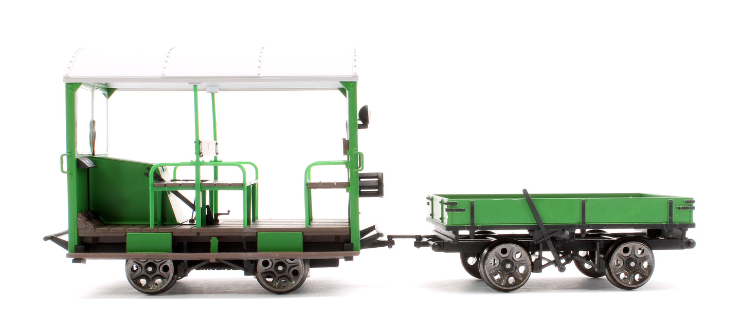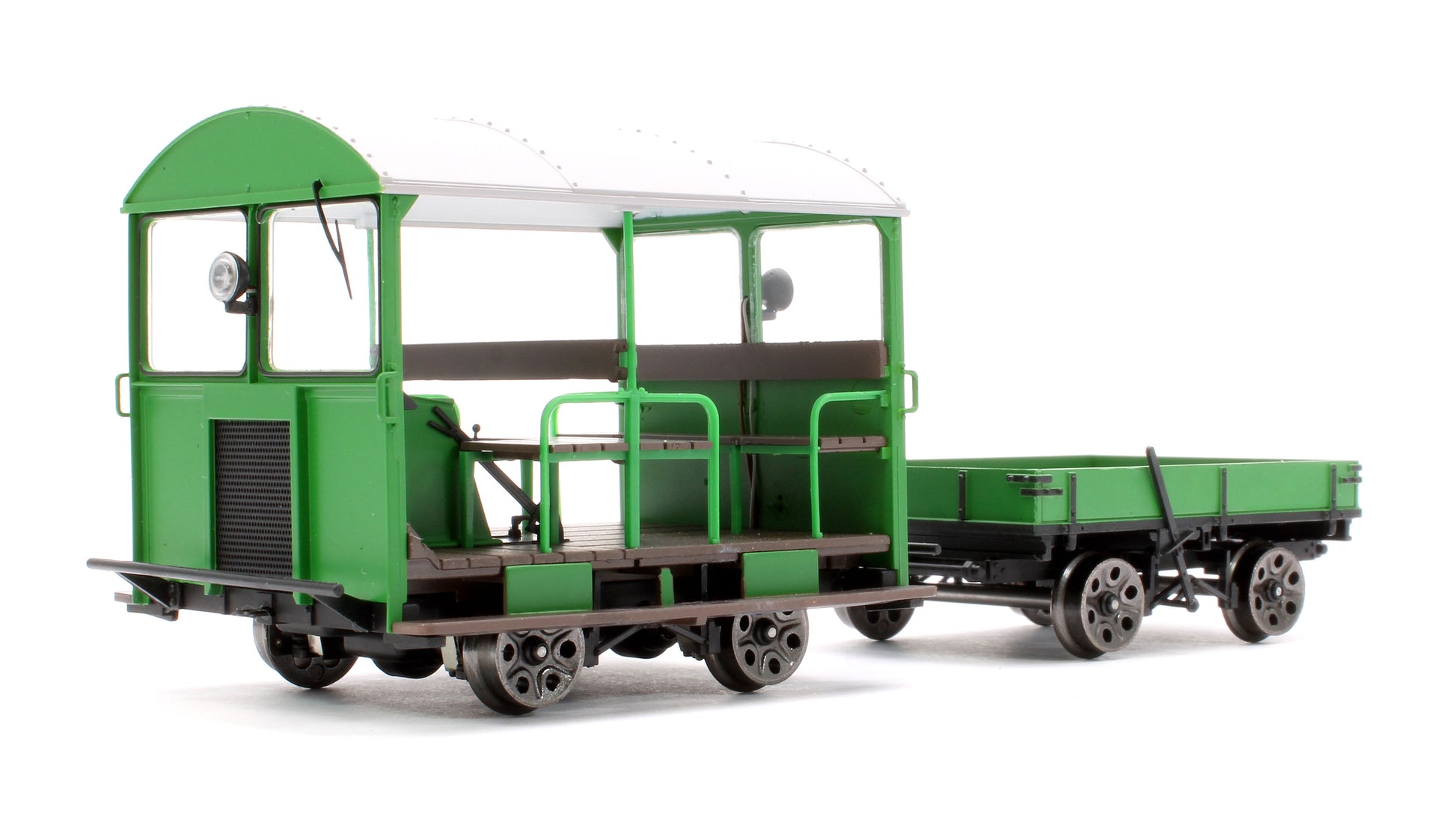 Ellis Clark Trains E1017U Wickham Trolley & Trailer, BR (SR) Green Un-numbered