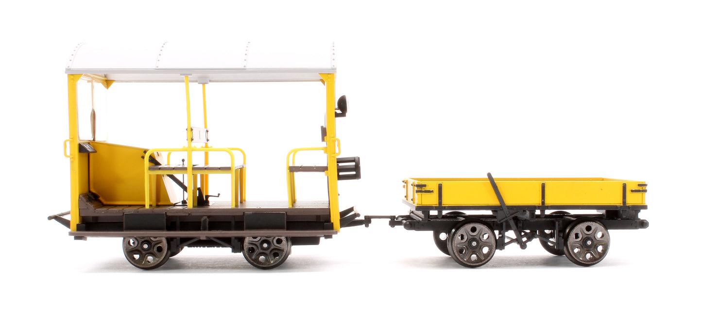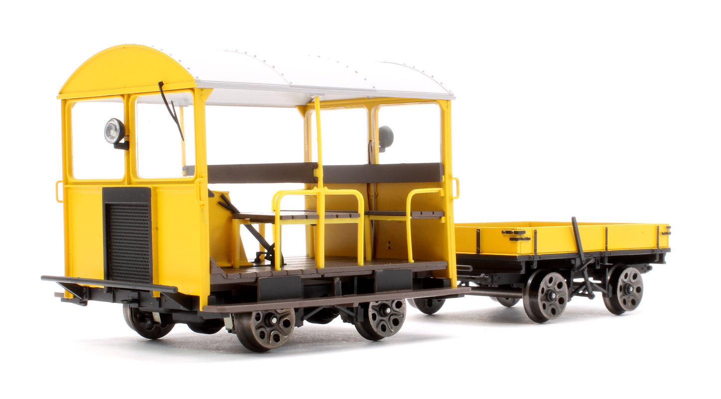 Ellis Clark Trains E1018U Wickham Trolley & Trailer, BR Yellow Unnumbered