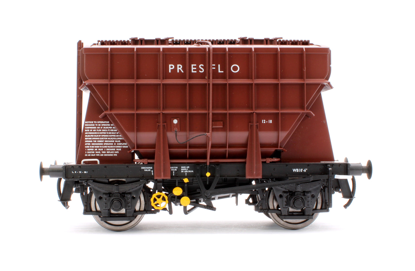 Presflo is railway parlance for ‘pressure flow’ and refers to the system fitted to these wagons whereby air is pumped through a load of powdered material to prevent it from clumping – thus allowing the load to be easily discharged.
