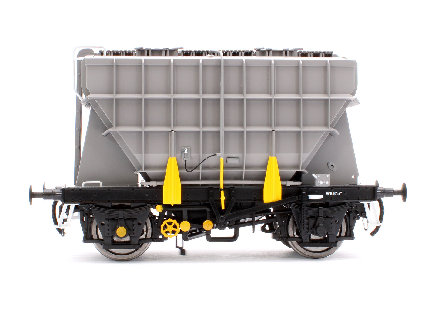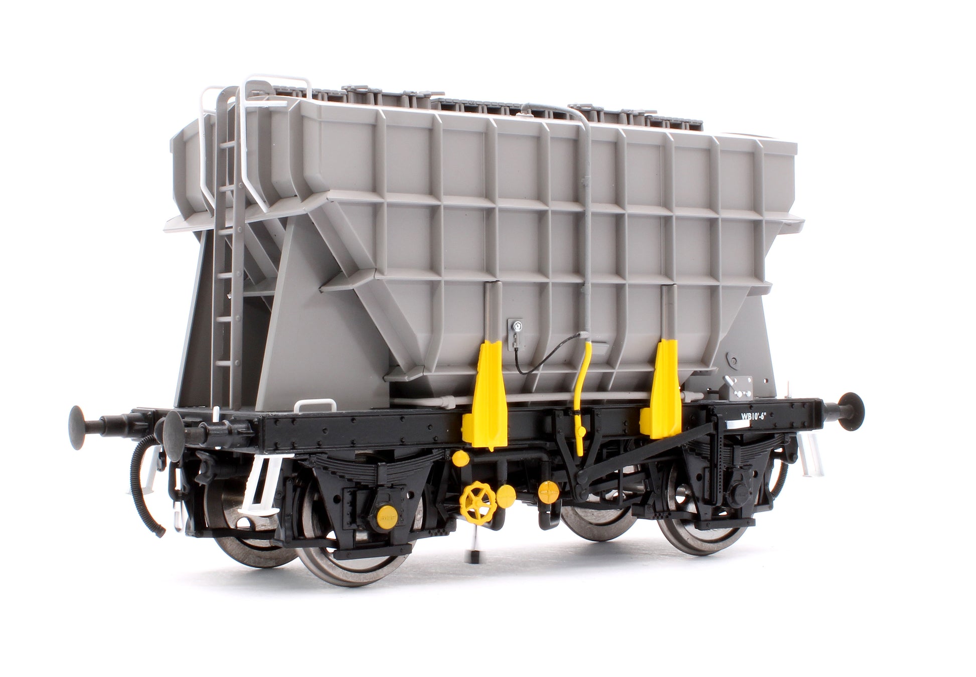 The 22-ton Presflos depicted by our models entered service from 1954 and were intended primarily for the transport of cement. But they also proved useful for other materials of a similar consistency, including salt, sand, powdered alumina and even flour. Their distinctive ribbed design was to prevent the wagon from collapsing inwards when discharging its load.