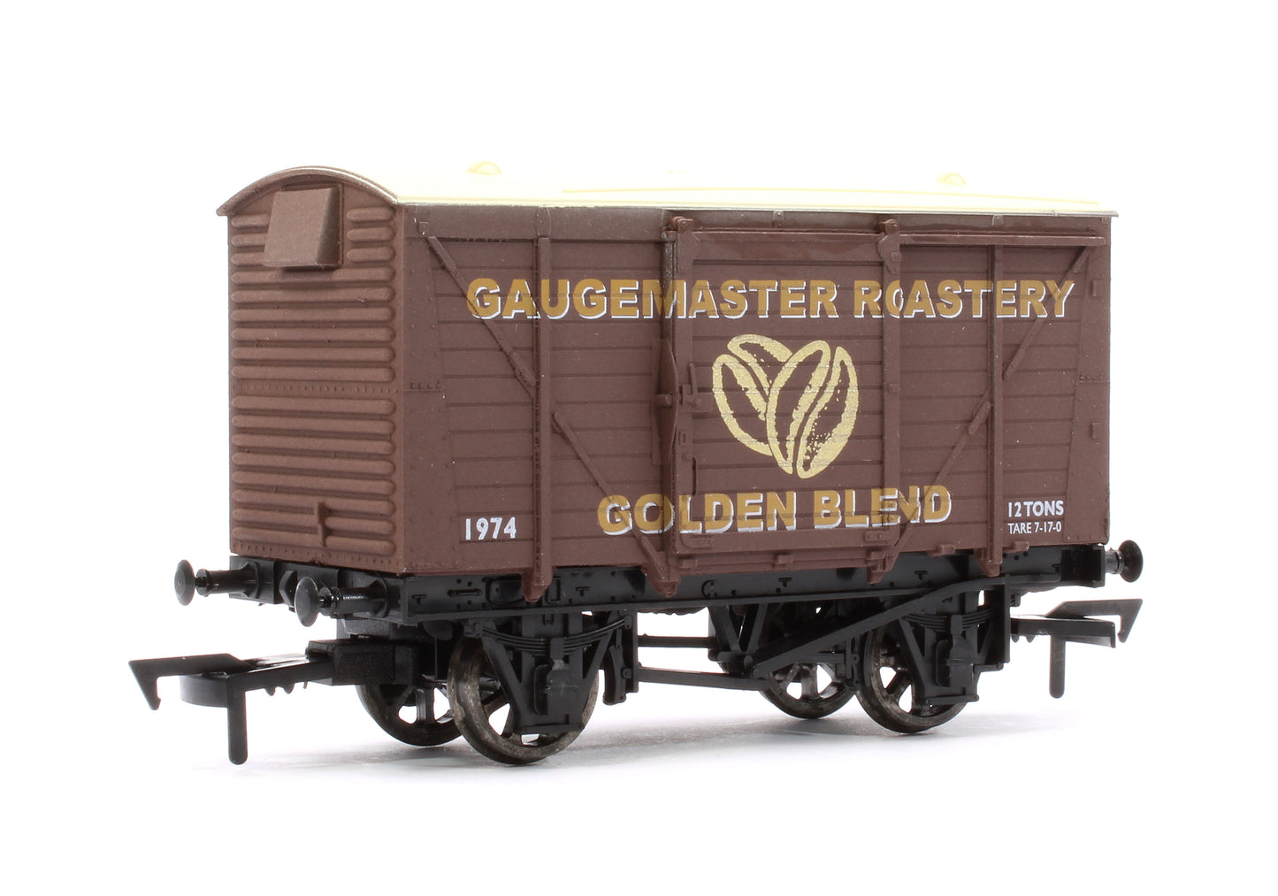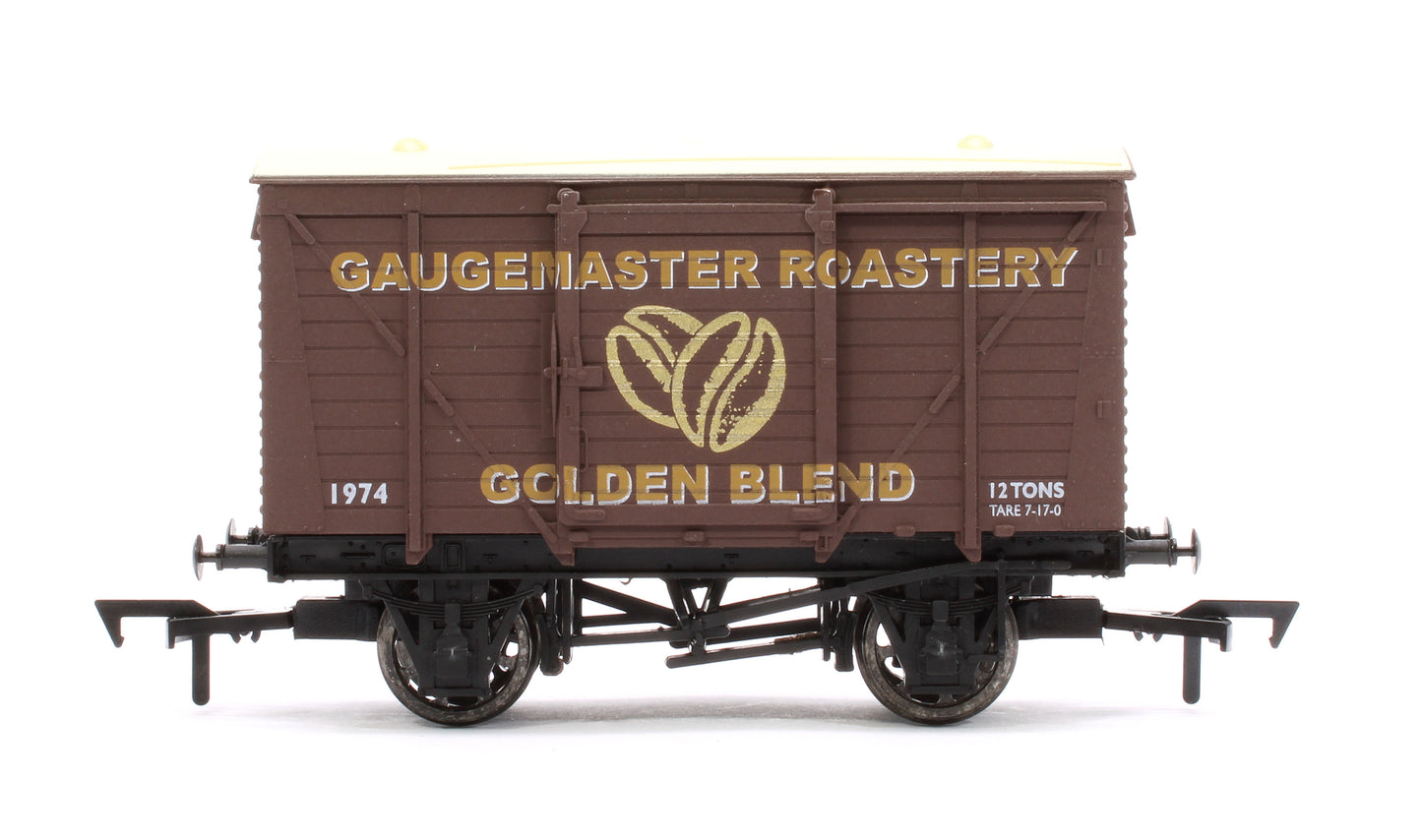 Help celebrate 50 years of business of Gaugemaster Controls with this specially commissioned wagon, The livery has been designed by our team here at GM and includes the running number 1974 and a detailed "Gaugemaster Roastery" livery. A great wagon for any collection or as a gift for an avid railway modeller.