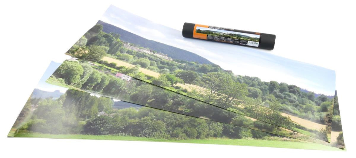 Our new range of backscenes will bring dimension and perspective to your model railway. We grew tired of seeing the same backscenes on model railways so set about developing our own range of scenes at an affordable price. Key benefits include a reasonable amount of foreground to allow realistic blending with countoured scenery, printing on 150gsm silk paper for durability and although different numbered backscenes are not completely compatible, unique scenes can be created with a clever use of scenic breaks.