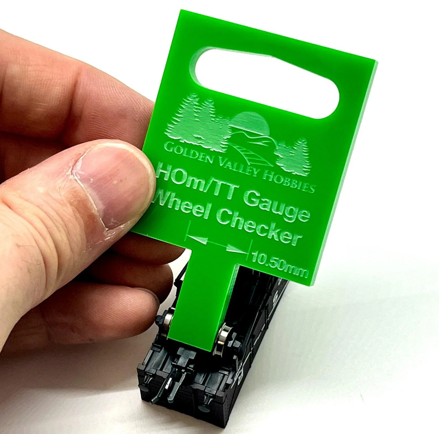 The Wheel Gauge checks the back to back measurements of model railway wheels. Getting the right dimension ensures the rolling stock travels through points and crossings without derailing or generating excessive movement and noise.