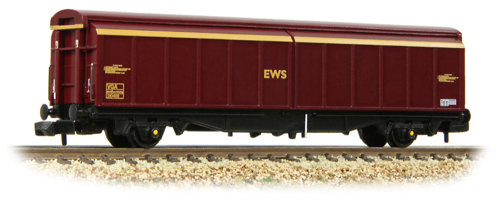 The VGA vans were built by British Rail between 1982 and 1983 for use on Speedlink services. Not only were they longer than the VAA-VDA air-braked vans that went before them, they also had taller openings as the sides, which were formed from a pair of sliding doors, extended above the roof line leaving just a narrow fixed roof section along the centre line of the van. Entering traffic on Speedlink services and finished in bare aluminium with red ends, the introduction of the new Railfreight identity in 1987 saw a number of VGAs gain yellow ends and Railfreight Distribution branding. Unlike many of their predecessors, the VGAs continued to find use after Speedlink services ceased in 1993 and soon many were formed into block trains carrying all manner of merchandise from explosives for the Ministry of Defence to petfood from Scotland. EWS became the main operator of the vans following Privatisation and a good number remain in service today.